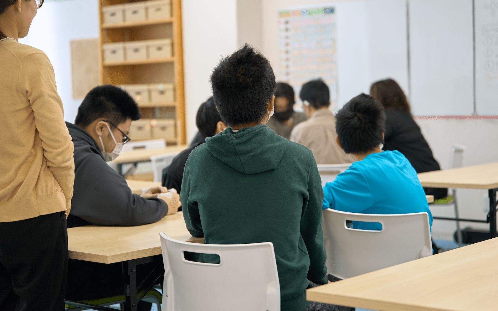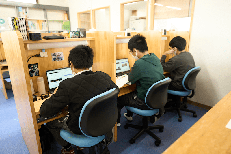 個別学習ブースで集中できる環境を整え、福祉の専門家が学習や生活を支援します。さらに、心理検査を活用した個別支援計画に基づき、一人ひとりに合った学習方法を提案しています。